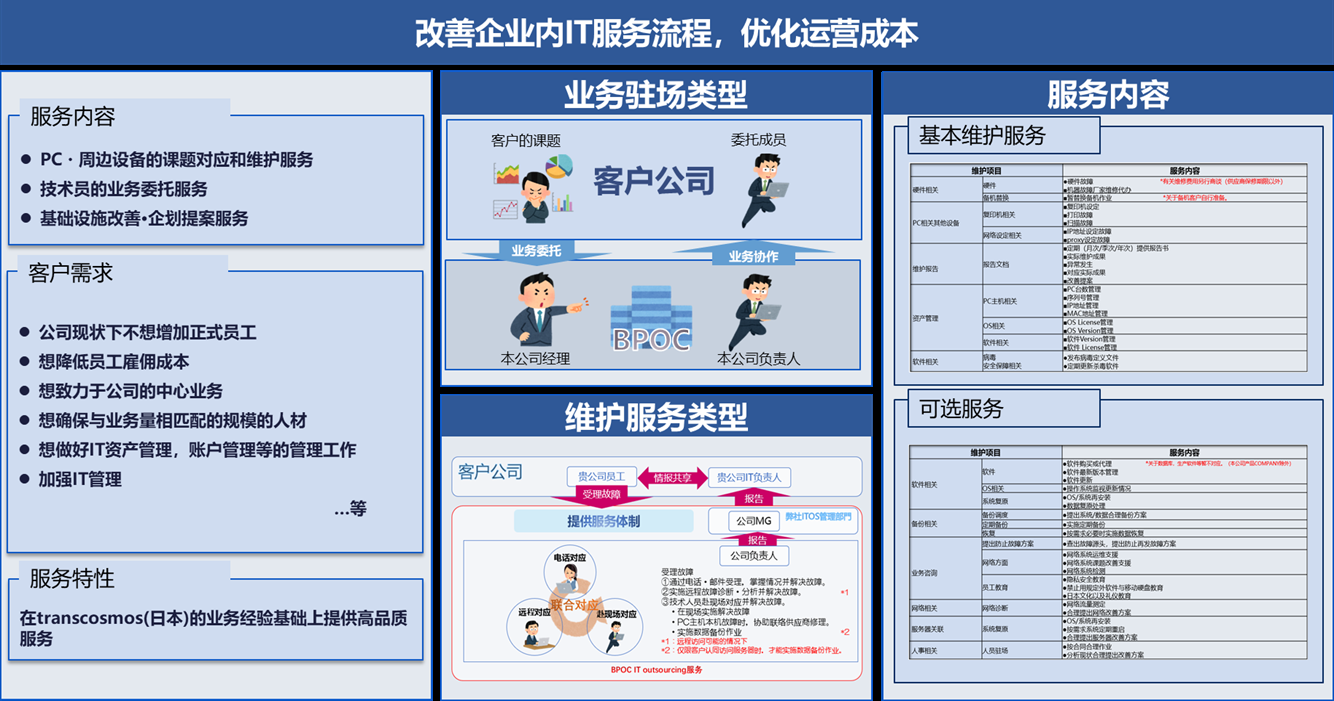 IT部门的业务课题通过ITO委托服务以及运维维护服务解决!