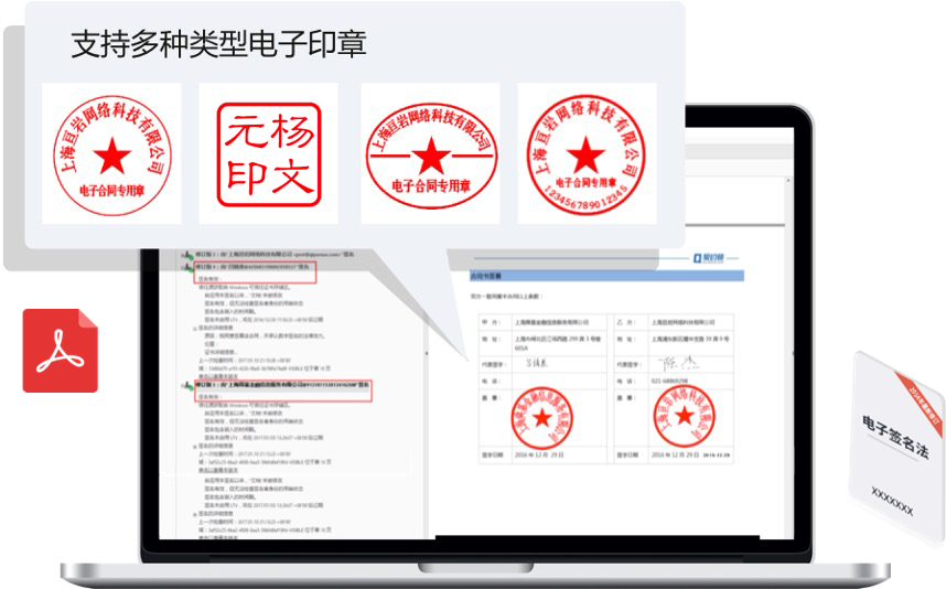 在业务中,可以采用电子文件加盖电子印章的形式,避免纸质文件用印的繁琐。通过印控系统,授权后会对指定的PDF文件加盖时间戳、数字签名。生成文件无法篡改,具有和纸质盖章文件同等的法律效力。