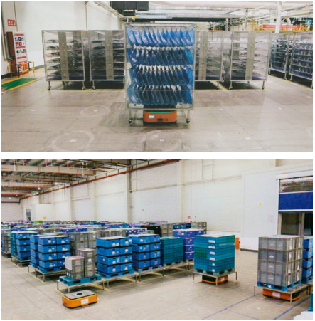 根据计划和数据,在作业者部分可以使用机器人搬运材料。从近年来的改善数据来看,AGV能够实现高效率化作业。
