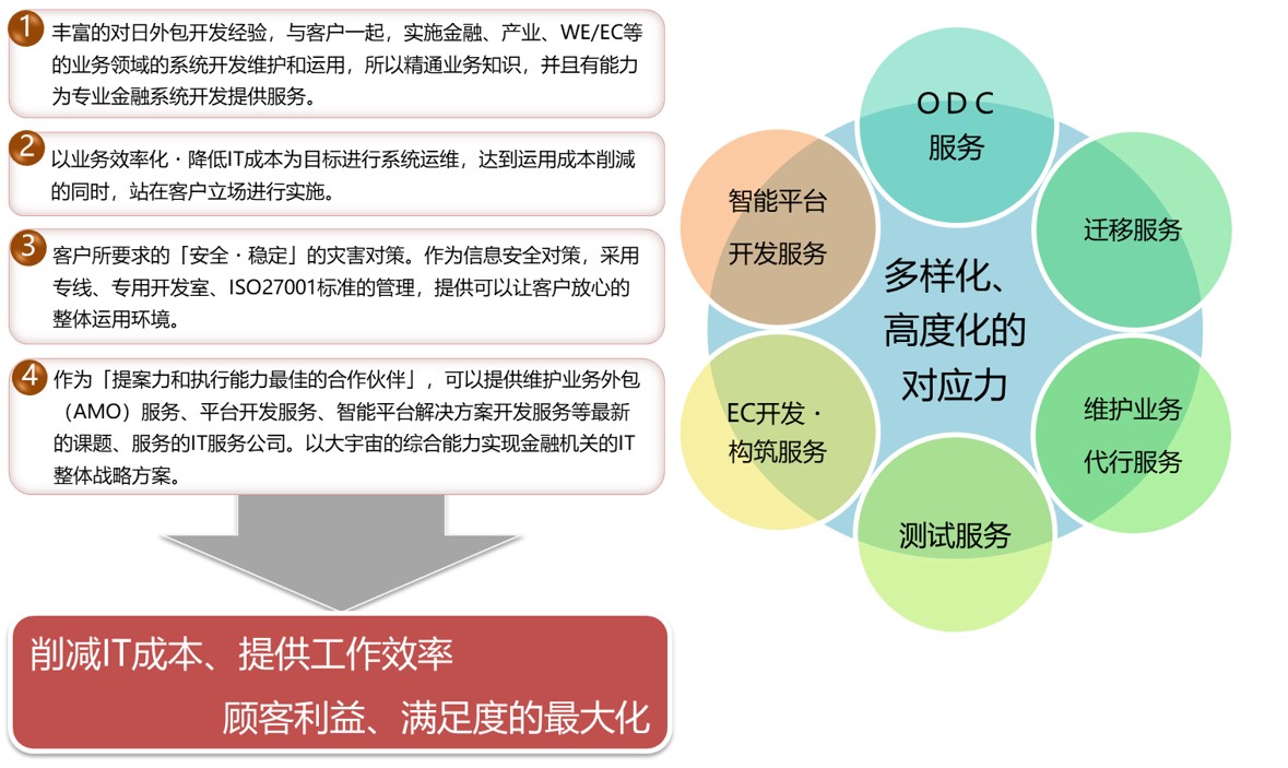 我们在为中国用户提供可持续的高品质IT服务的同时,也为海外用户提供外包开发中心等离岸外包服务。