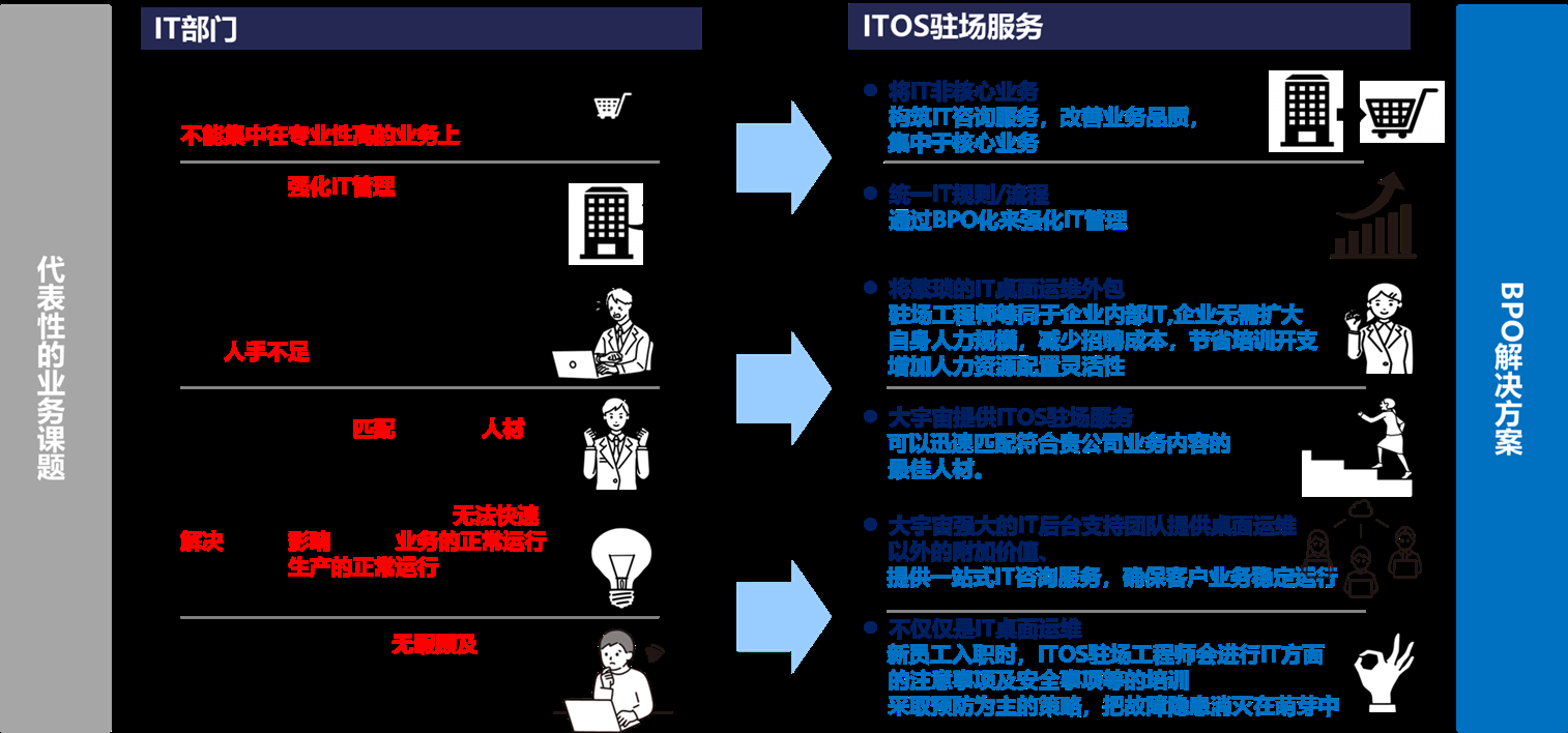 IT部门的业务课题通过ITO委托服务以及运维维护服务解决!