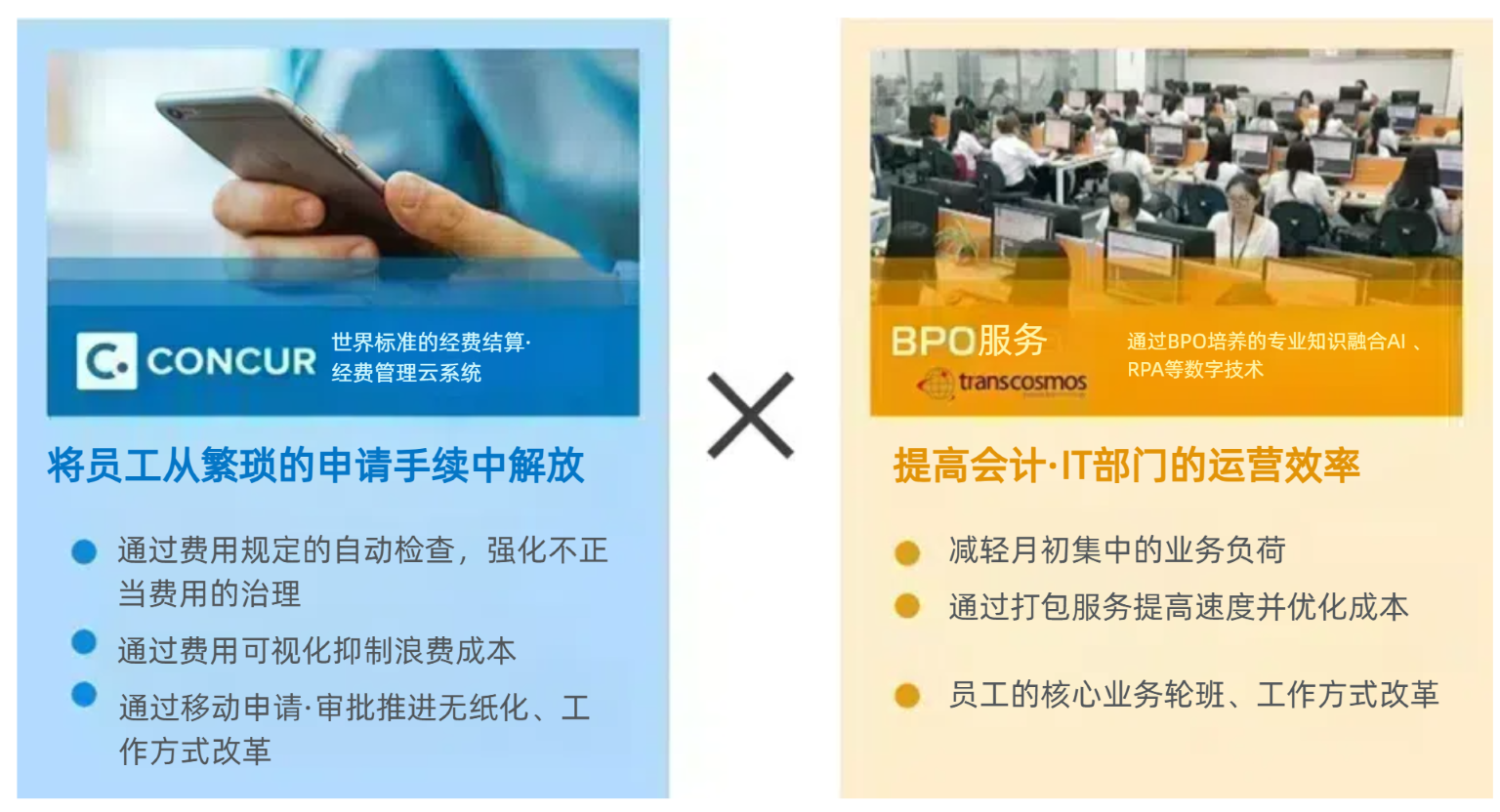 自动将 SAP Concur 系统与 BPO 服务集成,以简化一系列业务流程