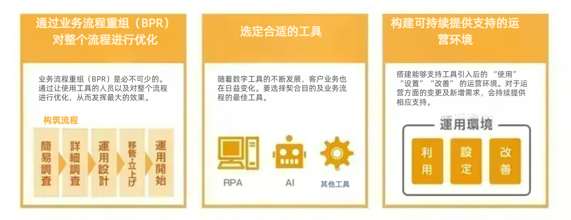 我们利用 RPA 和 AI 等数字工具,通过实战经验累积,提供高效的业务流程